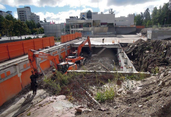 Suurin työmaa löytyy Espoonlahdesta, jossa maa on järissyt räjäytystöiden takia jo tovin kauppakeskus Lippulaivan alla.