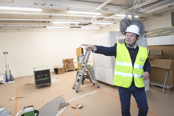 Apteekkari Risto Holma katselee tulevia toimitilojaan tyytyväisenä. Enää muutama päivä, ja kaikki työ tulee näkyväksi.