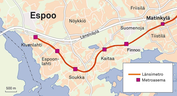 Vuonna 2020 Länsimetron pitäisi kulkea vielä paljon pidemmälle, Kivenlahteen asti.