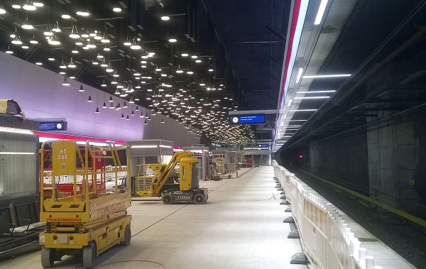 Myös metroasema kauppakeskuksen alla on jo miltei valmis. Kauppakeskuksen avajaisiin metrolla ei kuitenkaan pääse vielä tulemaan.