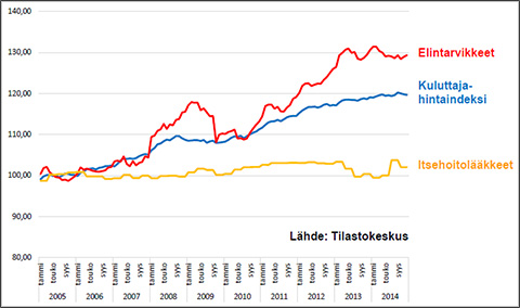 Tilastokeskus laskee itsehoitolääkkeiden hintakehityksen myydyimmistä itsehoitolääkkeistä, joiden hinnat se kerää neljännesvuosittain.