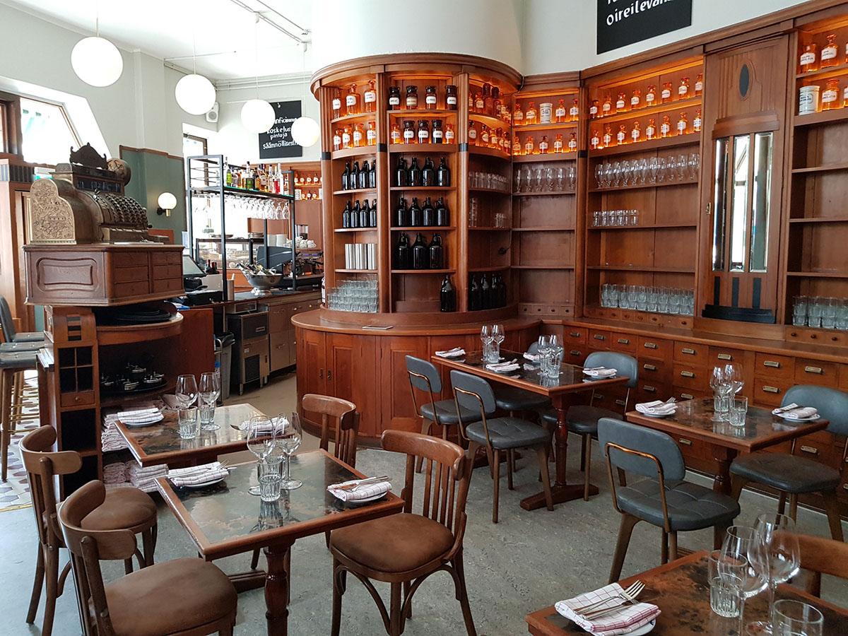 Ravintoloitsijat Tio Tikka ja Asta Nurmilaukas olivat etsineet Helsingin keskustasta sopivaa tilaa viidennelle ravintolalleen, kun tyhjilleen jäänyt jugend-apteekki hurmasi heidät pari vuotta sitten.