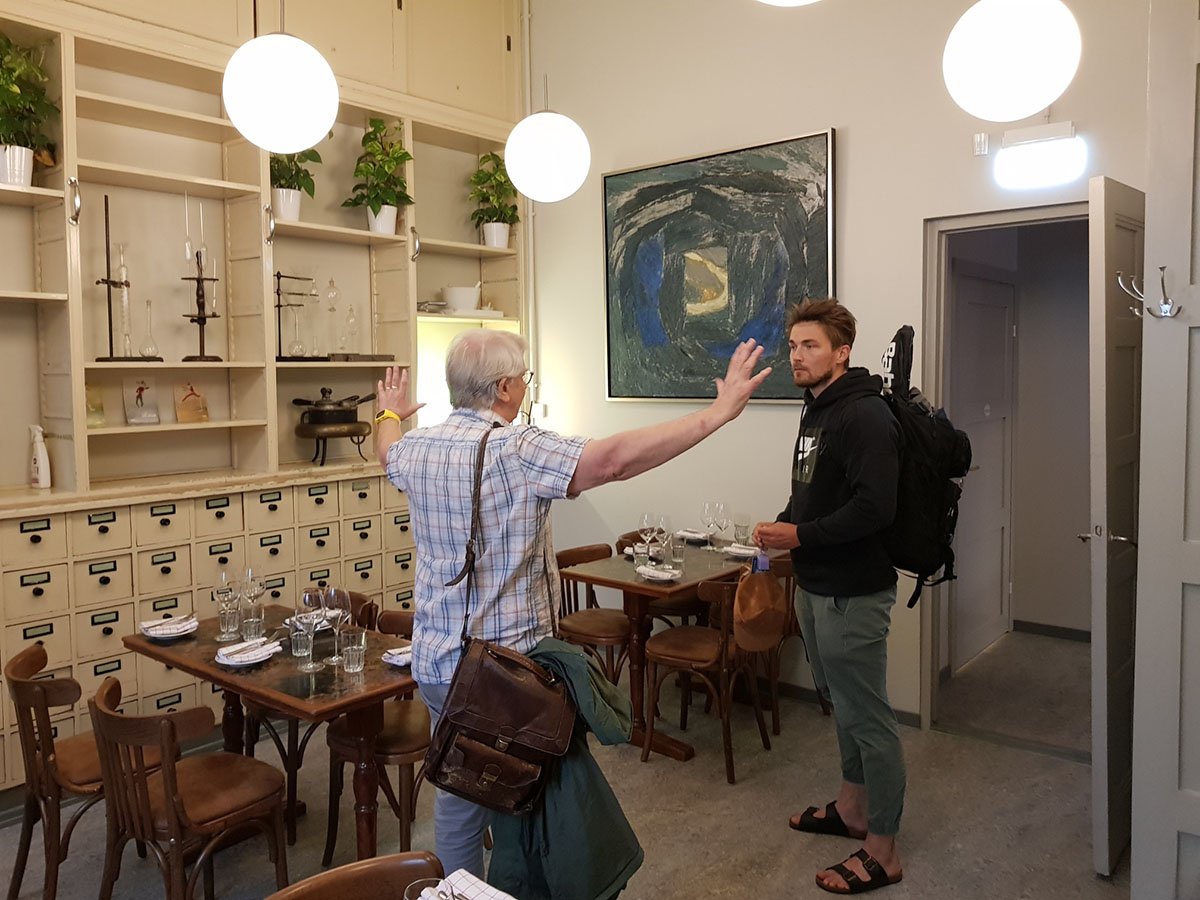 – Viinibaari on eräänlainen ravintolan ja apteekkimuseon hillitty yhdistelmä, jossa apteekkimiljöö tulee eläväksi osaksi toimintaa ja ilmapiiriä, Bengt Mattila kiittelee.