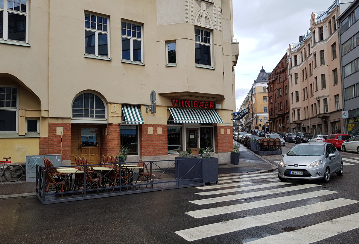 Eerikinkadun ja Lapinlahdenkadun risteyksessä sijaitsevassa viinibaarissa on 75 asiakaspaikkaa sisällä ja pienet terassit ulkopuolella.