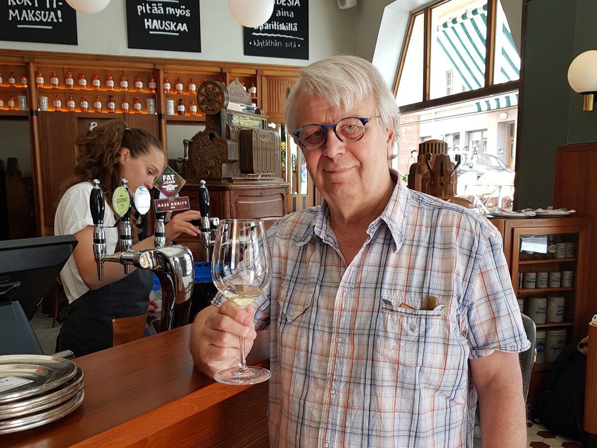Eläkkeellä oleva Bengt Mattila on tulevaisuudessakin tuttu näky viinibaarissa, sillä Tio Tikka on teettämässä viinibaarin seinälle valokuvasuurennoksia kaikista entisistä apteekkareista.