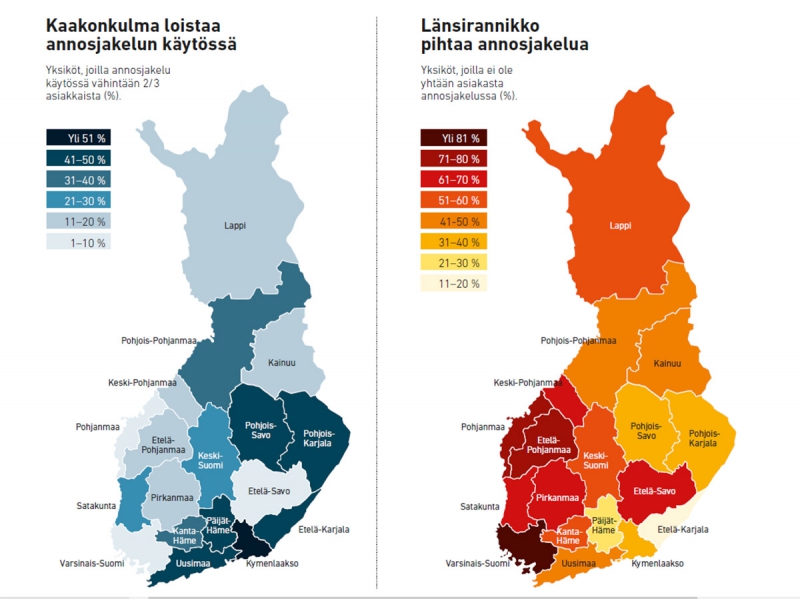 Maakuntakohtaiset erot annosjakelun käytössä ovat huomattavia.