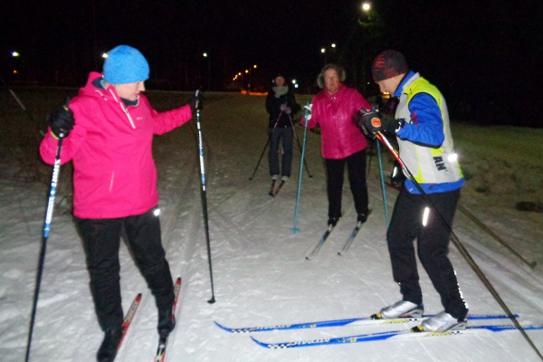 Nyt on konkretian vuoro, ja luvassa on paljon monipuolista rasitusta. Kuntopiirin jälkeisellä tapaamisella apteekin työntekijät saavat sukset jalkaansa ja opetusta oikeasta hiihtotekniikasta.