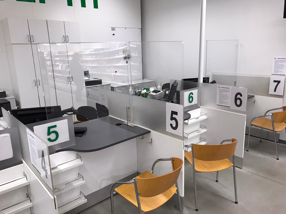 Apteekkien pleksit suojaavat suoralta pisaratartunnalta ja lisäävät välimatkaa henkilökunnan ja asiakkaiden välillä. Vastaanotto on ollut kiittävä pleksien molemmin puolin.