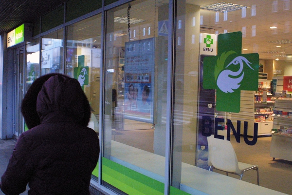 Eikä pelkästään kilpailijastaan. Keskustaa halkovan Narvan maantien laidalla tapaa 800 metrin matkalla kolme Benu-ketjun vihertävän väristä lääkemyymälää.