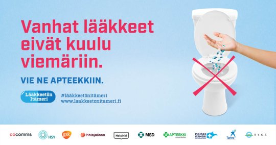 Kampanjan mahdollistavat Helsingin kaupunki, HSY, Apteekkariliitto, Pihlajalinna, Tamro sekä lääkeyhtiöt MSD ja GSK.
