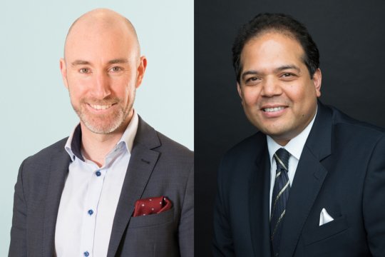 Kuvassa vasemmalla Matthew Iles ja oikealla Rajesh Patel. Apteekkarilehdessä kuvat ovat sekoittuneet keskenään.