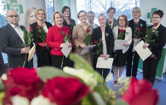 Pronssiset ansiomerkit saivat apteekkarit Sari Halko, Päivi Harjunen, Aapo Honkanen, Vuokko Jansson, Elina Järvenpää, Sari Kallioinen, Mika Karhu, Tuula Lekander, Ann-Mari Löfman ja Kirsi Myllynpää.