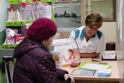 Apteekki on tottunut tekemään yhteistyötä niin diabetes- kuin muissakin asioissa muiden terveydenhuollon toimijoiden kanssa. Kemppainen kehuu suhteita kotisairaanhoitoon ja terveyskeskukseen oikein hyviksi. Tämän aamun asiakkaista apteekin ei ole toistaiseksi tarvinnut ohjata ketään vielä jatkoarviointiin terveyskeskuksen puolelle.