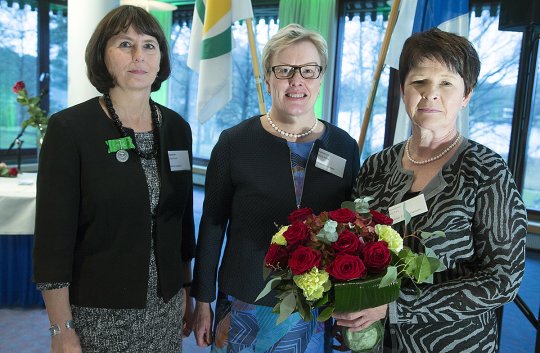 Sirpa Peura (vas.), Marja Ritala ja Eija Kari ovat vuoden 2016 puheenjohtajakolmikko.