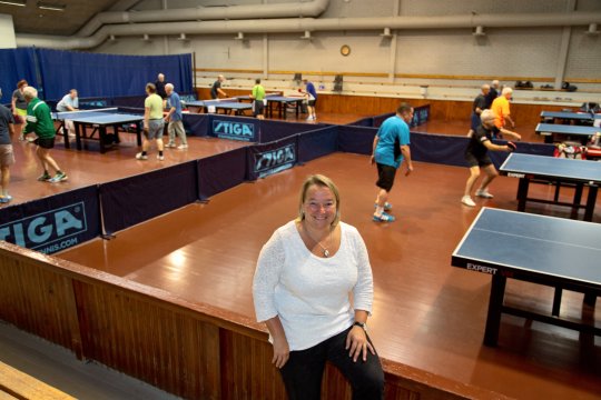 Helsingin Ruskeasuon urheiluhallin yläkerrassa aukeaa kaarevakattoinen korkea tila, joka on arkiaamuna täynnä iäkkäitä pöytätenniksen pelaajia. Pallot pompahtelevat sinisillä pöydillä, nelinpelien lomasta kuuluu puheensorinaa.