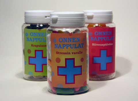 Suomessa on reilun puolen vuoden ajan myyty karkkeja lääkepurkin kaltaisissa pakkauksissa. Makeisia ovat myyneet muun muassa erikois-, lahjatavara- ja sisustusliikkeet.