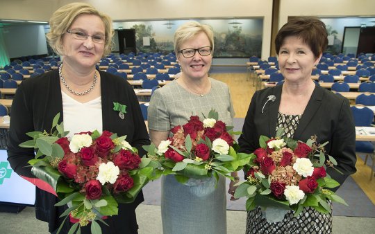 Kirsi Pietilä (vas.), Marja Ritala ja Eija Kari ovat vuoden 2017 puheenjohtajakolmikko.