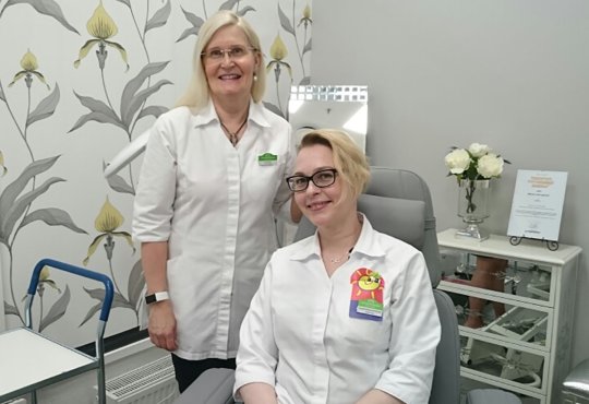 Apteekkari Anna-Riitta Reinikainen ja sairaanhoitaja Johanna Kakriainen iloitsevat Terveyspisteen saamasta hyvästä palautteesta.