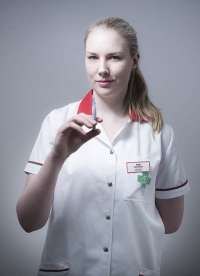 – Harjoittelin ensin ohjaajan valvonnassa suolaliuoksen pistämistä päärynään ja appelsiiniin, myöhemmin myös ystäviini.