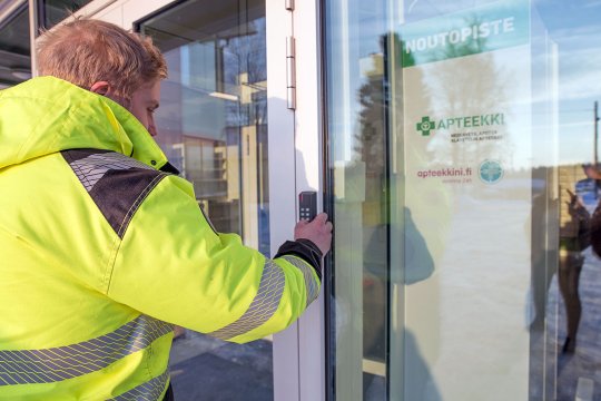 Kuusinumeroinen koodi lukulaitteeseen, ja naks, Alavetelin apteekin ovi aukeaa vaikka keskellä yötä.