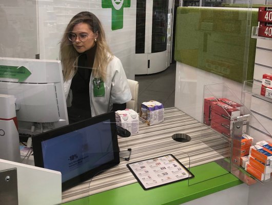 Apteekkien pleksit suojaavat suoralta pisaratartunnalta ja lisäävät välimatkaa henkilökunnan ja asiakkaiden välillä. Vastaanotto on ollut kiittävä pleksien molemmin puolin.