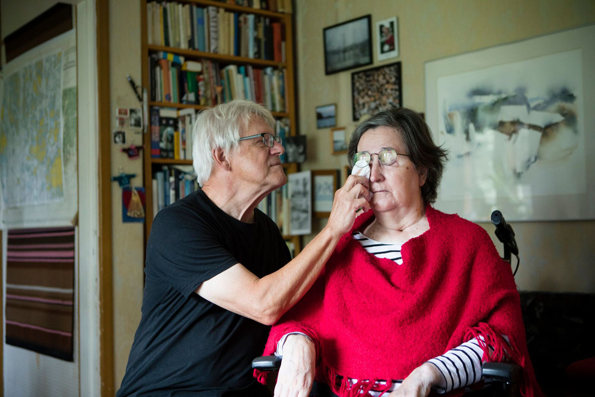 – Sen illan itkin meidän hirveän surullista elämäämme, mutta jo seuraavana aamuna uhkuin taas tarmoa. Meillähän on kaikki hyvin: Outi selvisi valtavasta aivoverenvuodosta, hän kuntoutuu ja saamme olla yhdessä. Meillä on riittävät eläkkeet ja meitä autetaan.