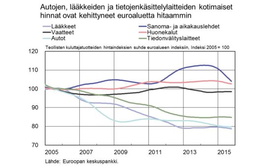 Vuodesta 2007 vuoteen 2015 yhdenmukaistettu kuluttajahintaindeksi on kohonnut euroalueella 15 prosenttia, kun Suomessa nousu on ollut 20 prosenttia. Tämä tarkoittaa, että jo aiemmin korkea kotimainen hintataso on noussut entisestään. Suomi on nyt kuluttajahinnoilla mitattuna euroalueen kallein maa.