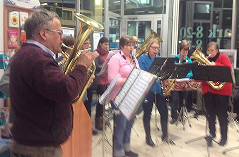 Johansson soitti itse alttotorvea ja Salon Puhallinorkesteri, jonka innokas jäsen Johansson on, soitteli vieressä. Myös yksi apteekin työntekijöistä seka apteekkarin pojanpoika soittivat orkesterissa.