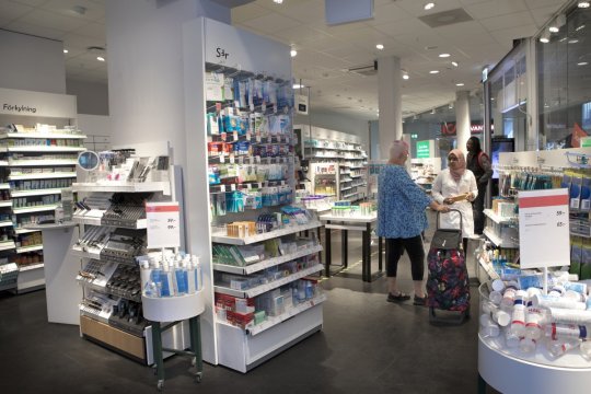 Lisääntyvä verkkokauppa on muuttanut myös Ruotsin kivijalka-apteekkeja. Kun tuotteet myydään yhä useammin verkossa, liikkeissä on raivattu lattiatilaa tuotteilta muille palveluille.