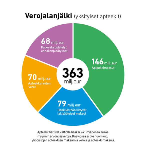 Yksityisten apteekkien verojalanjälki oli viime vuonna yhteensä 363 miljoonaa euroa.
